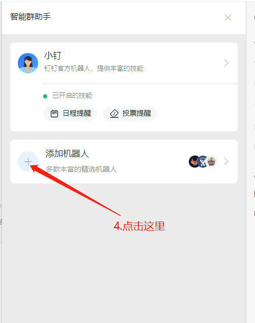 3. 如下图,点击【添加机器人】