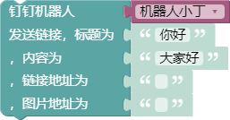 - 功能简介:通过钉钉机器人发送一条链接;注:输入的标题内容链接地址均不能为空;