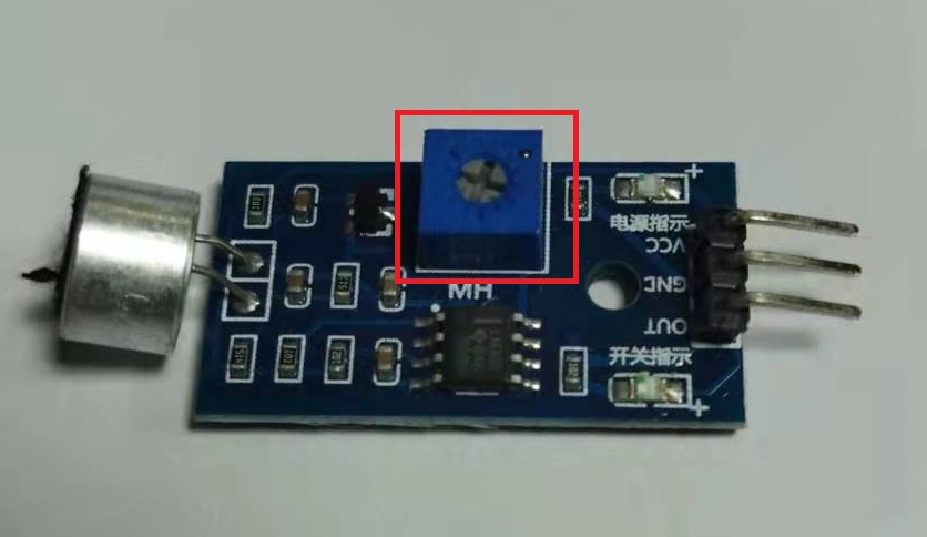 可以通过调节传感器上的旋钮来调节检测的灵敏度。如下图。