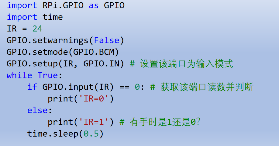 - 利用红外线传感器检测障碍物以控制小灯的程序在Python环境下具体代码如图8
