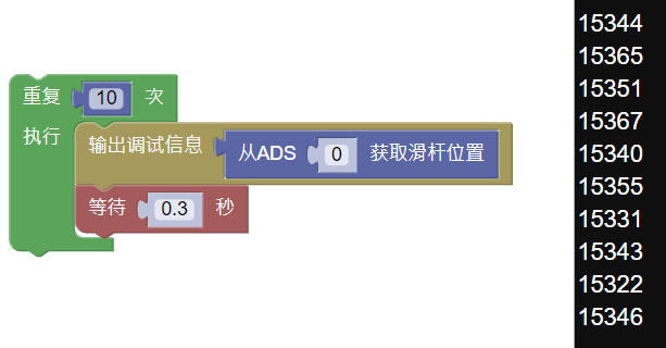 - 1、 土壤湿度传感器测试程序如下图,检测三秒钟内(重复10次*等待时间0.3秒),每隔0.3秒获取并输出一次土壤传感器的值。